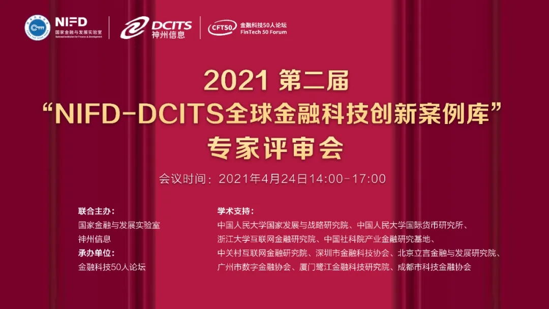 4月24日,2021第二届“NIFD-DCITS全球金融科技创新案例库” 专家评审会在京举办。会议由国家金融与发展实验室和神州信息联合主办,金融科技50人论坛承办。中国人民大学国家发展与战略研究院、中国人民大学国际货币研究所、浙江大学互联网金融研究院、中国社科院产业金融研究基地、中关村互联网金融研究院、深圳市金融科技协会、北京立言金融与发展研究院、广州市数字金融协会、厦门鹭江金融科技研究院等提供学术支持。
