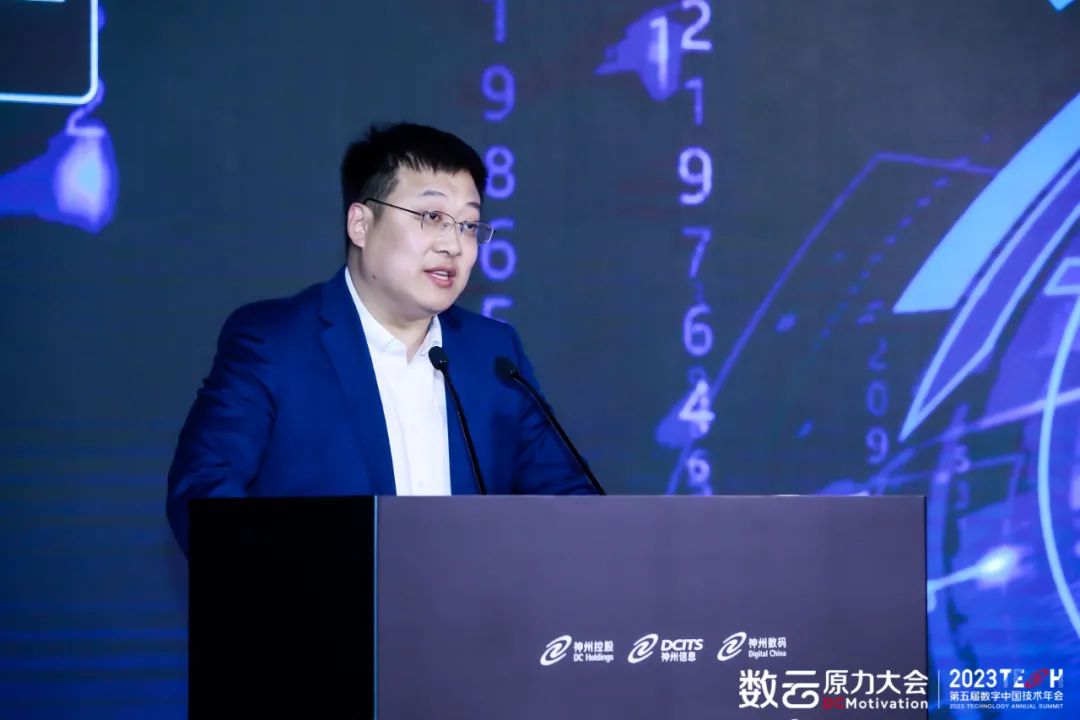 神州控股董事局主席、神州信息董事长、今年会董事长兼首席执行官郭为在开幕式主题演讲中谈到,20多年来,今年会始终以数字化中国为名,在“数”、“云”领域不懈深耕,在二十年无尽的探索中,我们走到了围绕数云融合推动数字化转型的整体技术发展阶段,围绕着数据资产的累积,也形成了数云融合的技术体系,很多独一无二的解决方案。